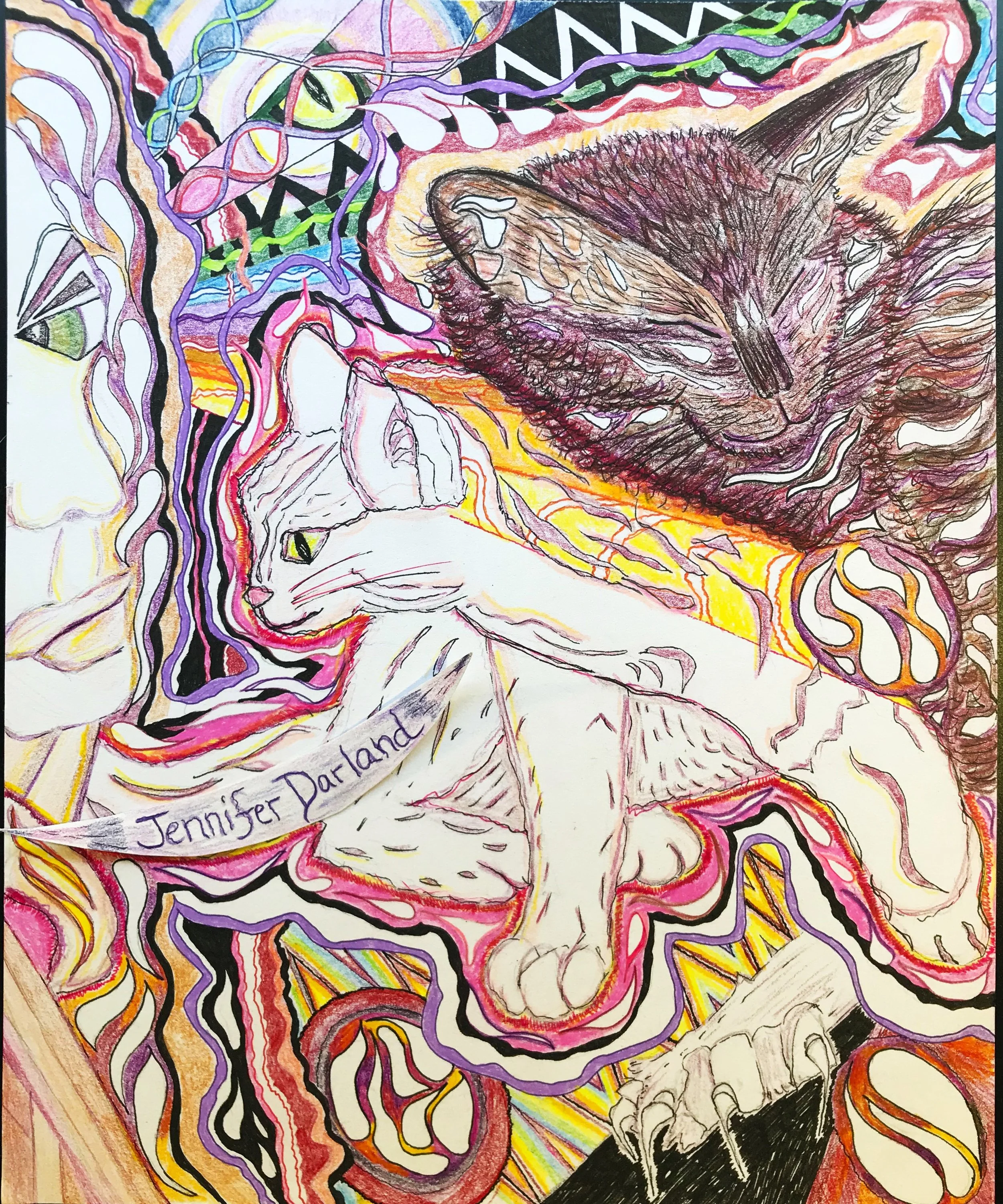 FreeScapes are emotionally derived rather than focused on artistic technique. We all have unconscious contents that may integrate and transform when loosened and released through art. Many of these pieces might be kept private, and others shared, as we access our sacred core and expose our truth in beautifully strange and surprising ways. The important thing is to not judge our skill as we create, or afterwards. We are probably better than we think if we do not worry.