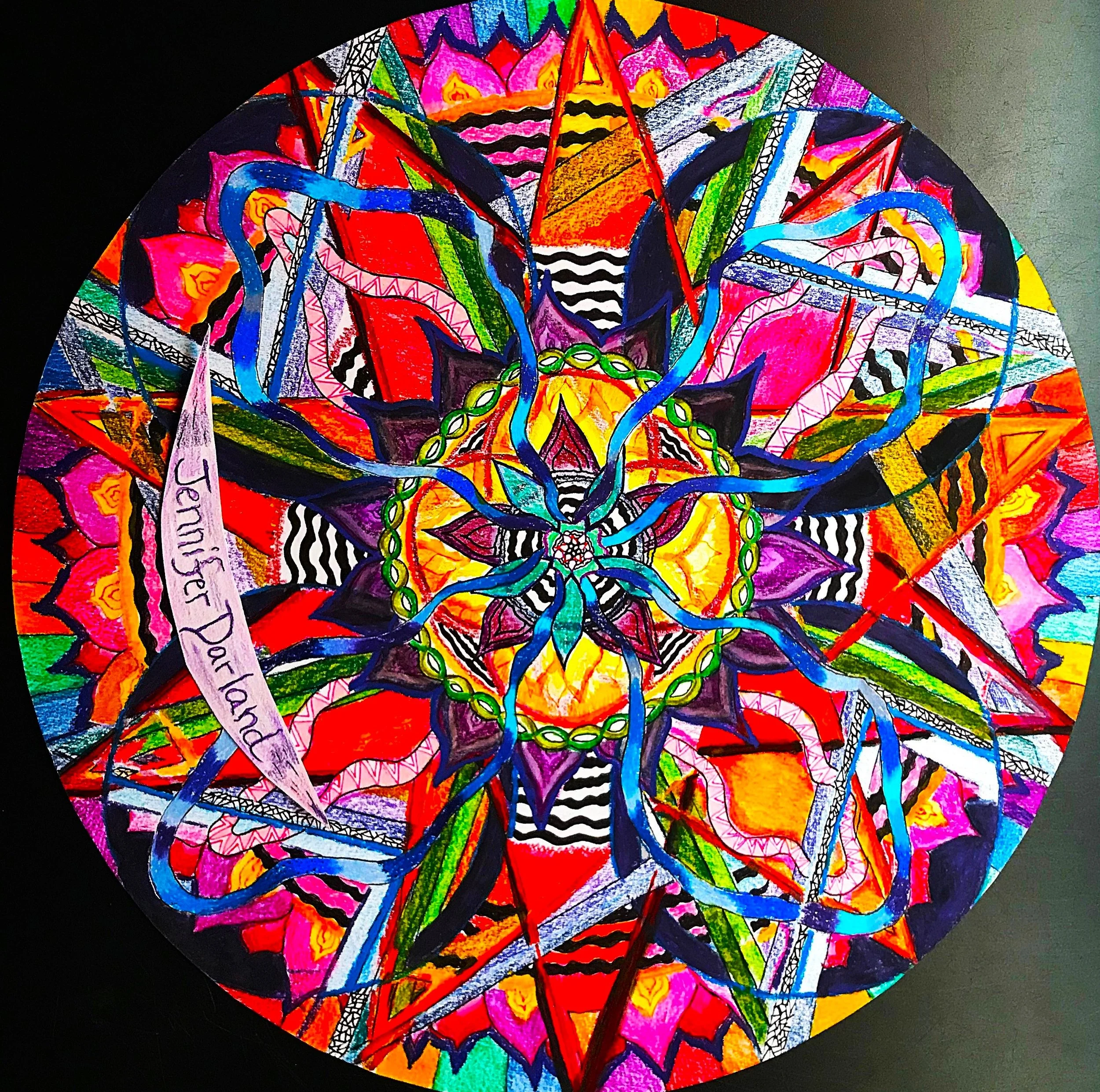 Anyone can make a mandala as a meditation into the inner self. The play of energetic shape, of freedom and chaos structured within form, is a psychologically powerful artistic exploration with the potential for deep healing and a beautiful result. Just find a center point and let it radiate from there!