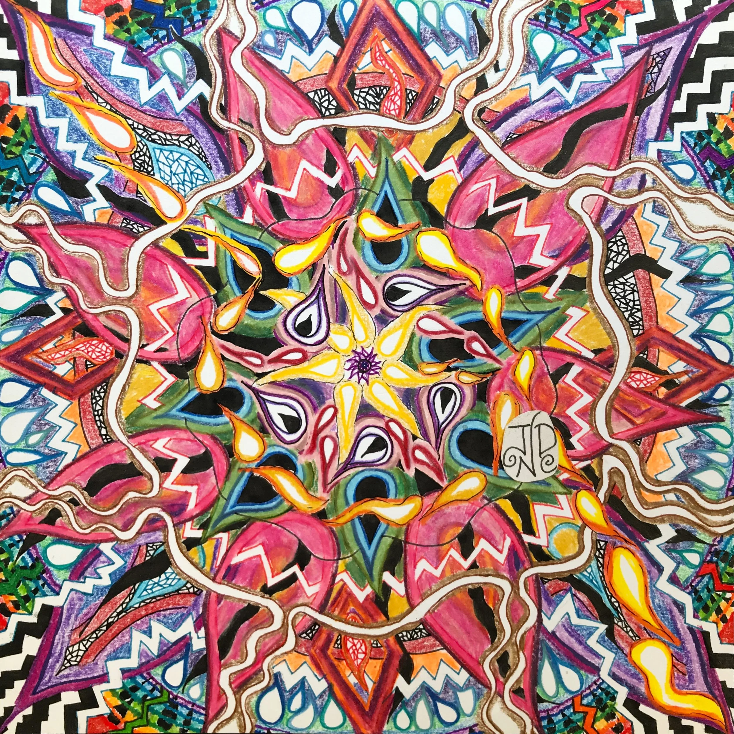Anyone can make a mandala as a meditation into the inner self. The play of energetic shape, of freedom and chaos structured within form, is a psychologically powerful artistic exploration with the potential for deep healing and a beautiful result. Just find a center point and let it radiate from there!